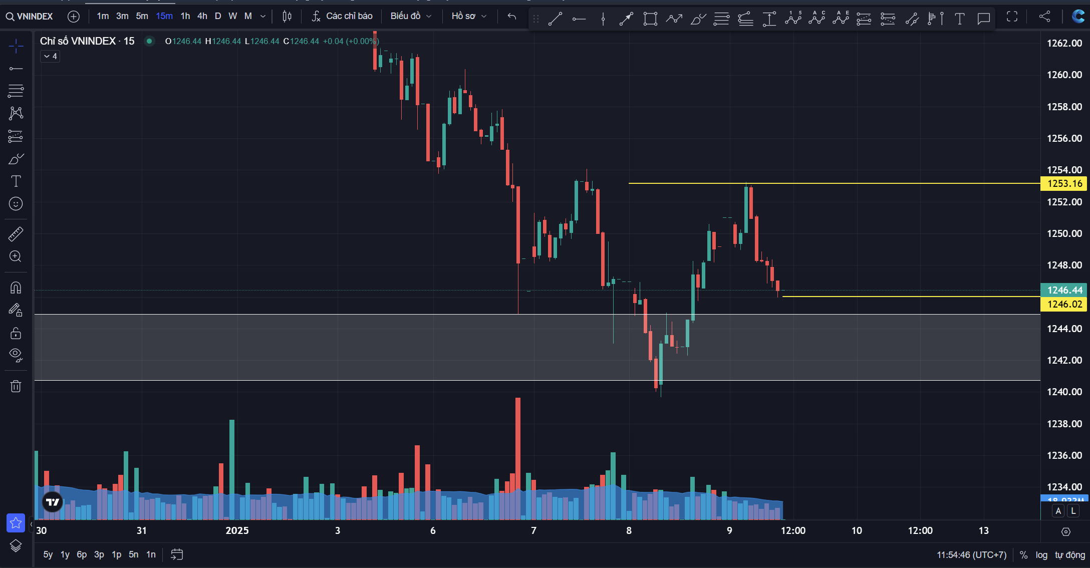 Giờ là chờ market trả kết quả vào phiên chiều xem đoạn 1244-1246 có giữ được giá hay ko