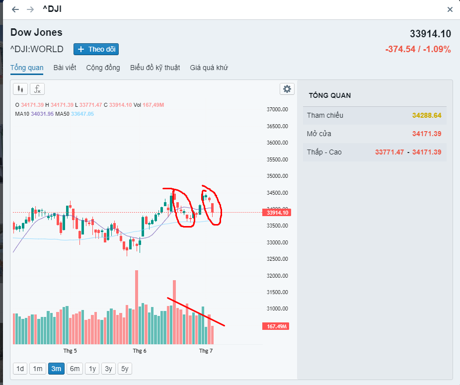 DJI rút chân nhưng vẫn khá áp lực, kiểu này là hơi đuối, nhắm mắt buông xuôi. Nhịp giảm momentum cao hơn trước
