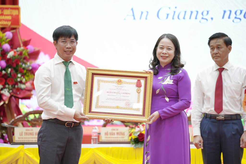 Đại diện Antesco đón nhận Huân chương Lao động hạng Nhì tại Đại hội Thi đua Yêu nước tỉnh An Giang.
