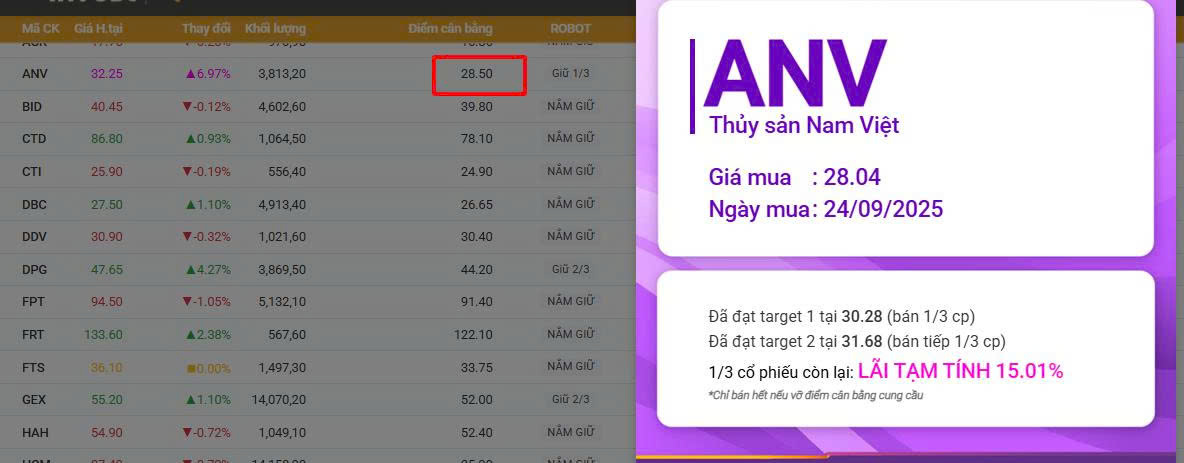 ANV đã vượt điểm cân bằng cung cầu phiên 24/9 và cho cơ hội sóng mới. Hiện tại đã đạt lợi nhuận 15%. Chỉ cần Xác định chính xác Cung - Cầu của cổ phiếu ở từng thời điểm sẽ giúp bạn tối đa hóa lợi nhuận mà không bị cuốn theo tâm lý thị trường.