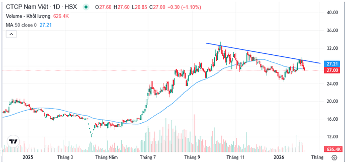 Trong báo cáo cũ của chúng tôi cập nhật về KQKD Q3/25, chúng tôi cho rằng ANV đang đứng trước giai đoạn được tái định giá, tuy nhiên xét về mặt kỹ thuật thì giá cổ phiếu đã chạy trước kết quả kinh doanh 1 bước khá dài nên cần tích lũy lại trước khi tăng tiếp. Trên thực tế giá cổ phiếu đang đi đúng xu hướng này, và đã tạo đỉnh ngắn hạn tại thời điểm báo cáo cũ của chúng tôi. Vì thế, chúng tôi sẽ update KQKD Q4/25 và cả năm 2025 để xem đây liệu đã phải là đỉnh dài hạn hay chỉ là một nhịp nghỉ chân trước khi quay trở lại cuộc đua của ANV.