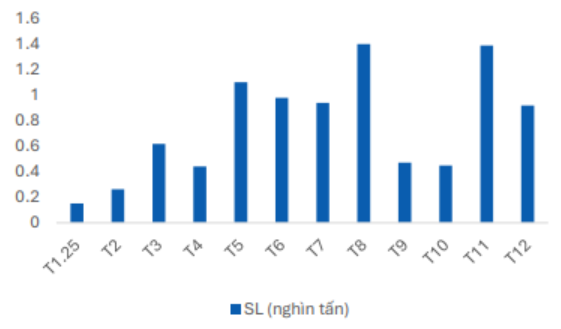 - DT tiêu thụ nội địa đạt 516 tỷ đồng (+52% yoy) nhờ mức nền thấp trong 2024 và cải thiện được lượng hàng tiêu thụ qua kênh BHX.
