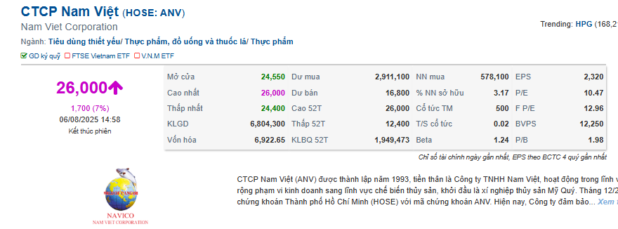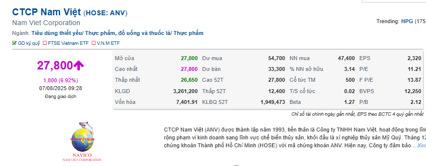 Đáng chú ý, ngày 5/7 vừa qua, CTCP Nam Việt (Navico, mã: ANV) đã ghi dấu bước tiến chiến lược trong hành trình mở rộng thị trường quốc tế khi ký kết thỏa thuận hợp tác với AV09 Comercio Exporter Ltda – một trong những doanh nghiệp nhập khẩu thực phẩm lớn nhất tại Brazil. Theo thỏa thuận này, ANV trở thành doanh nghiệp Việt Nam đầu tiên xuất khẩu chính ngạch các sản phẩm cá tra, basa và rô phi vào Brazil. Những lô hàng đầu tiên dự kiến sẽ cập cảng trong năm 2025, mở ra cơ hội lớn để gia tăng sản lượng xuất khẩu và mở rộng thị phần tại khu vực Nam Mỹ.