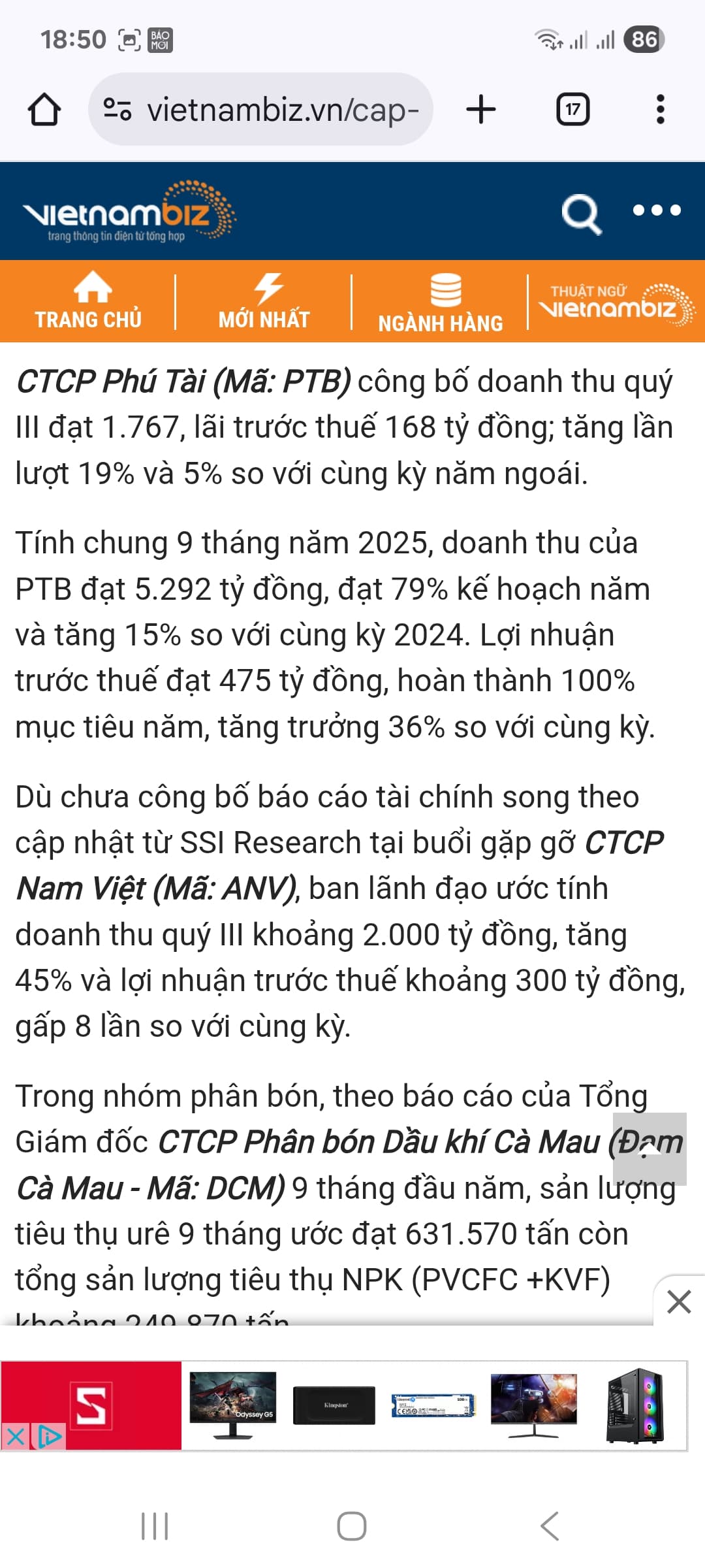 Lũy kế 9 tháng, ANV đạt doanh thu 4.833 tỷ (+36%), lãi sau thuế 748 tỷ (+>17 lần), EPS 2.809 đồng/cp, tiến sát kỷ lục lịch sử.