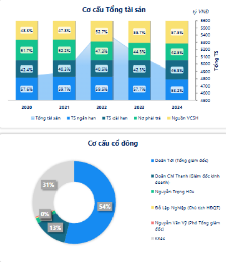 Về cơ cấu sở hữu, sở hữu khác chiếm tỷ lệ cao nhất là 99.1%, tiếp đến là sở hữu nước ngoài 0.86% và không có sở hữu nhà nước. Trong đó, cổ đông lớn nhất là Doãn Tới (Tổng giám đốc) sở hữu 53.9%, lớn thứ 2 là Doãn Chí Thanh (Giám đốc kinh doanh) nắm giữ 12.9% và đứng thứ 3 là Nguyễn Trọng Hữu nắm giữ 2.01%
