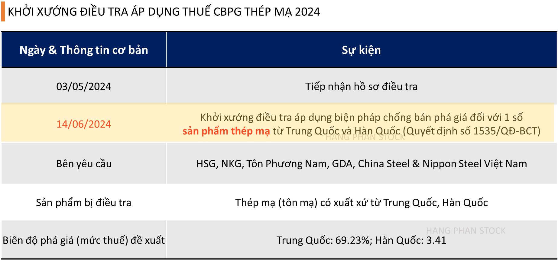 NKG và HSG sẽ cần chờ kêt quả của cuộc điều tra CBPG thép mạ, khởi xướng từ tháng 6/2024
