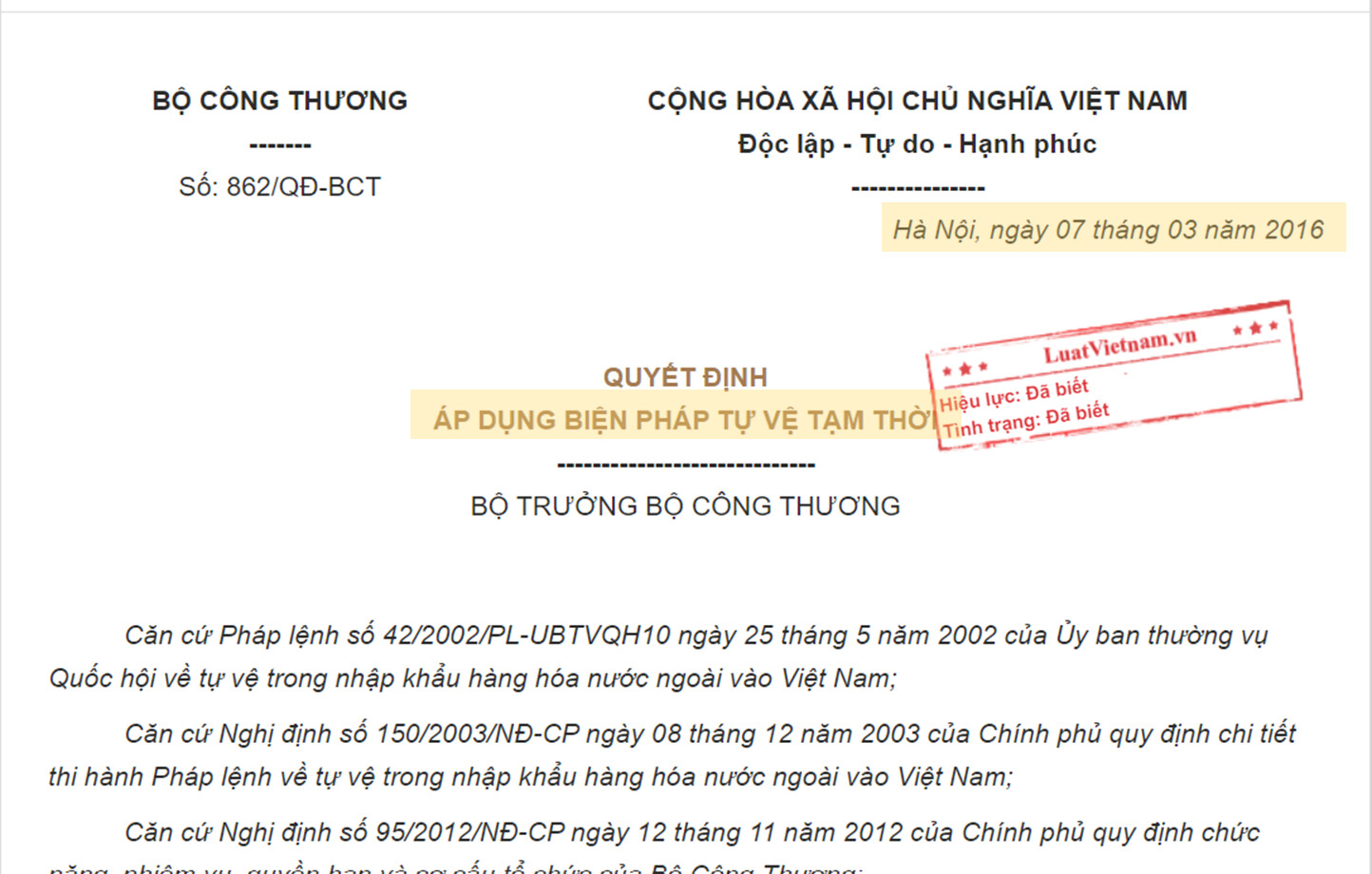 2016 cũng áp thuế tạm thời trước, sau đấy mới áp thuế dài hạn sau