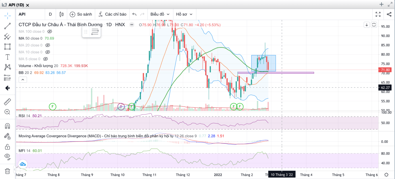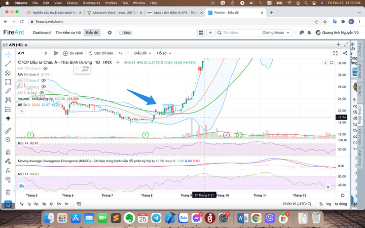 Em mới soi lại chart cũ thì còn thấy có đoạn vùng 2x API đã từng đánh kiểu này, tích luỹ vài phiên, gãy giả, chạm MA 50, hỗ trợ rồi bật tăng mạnh, xác định chân sóng
