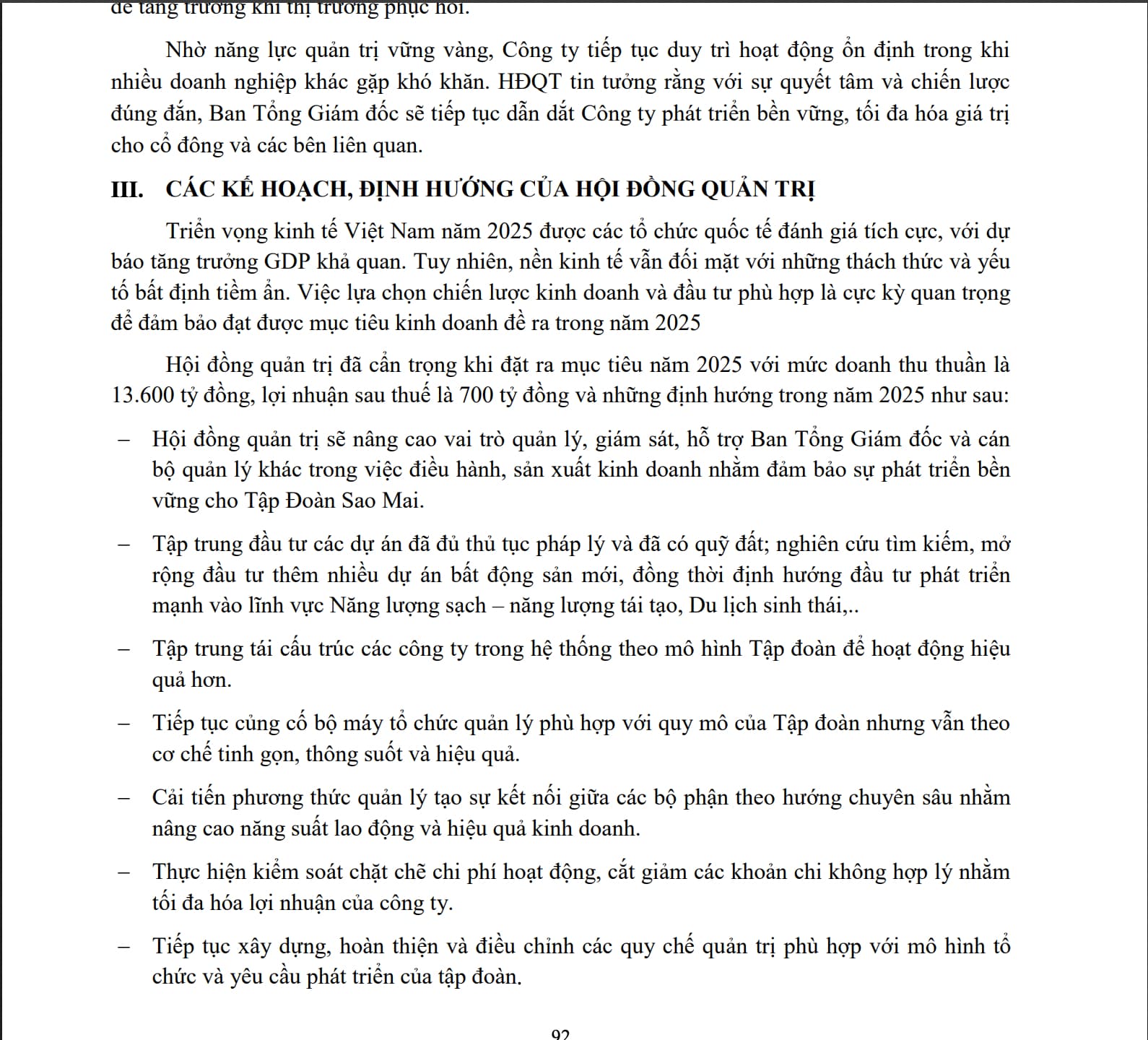 Hội đồng quản trị đã cẩn trọng khi đặt ra mục tiêu năm 2025 với mức doanh thu thuần là 13.600 tỷ đồng, lợi nhuận sau thuế là 700 tỷ đồng → khả năng Q3 hoặc Q4 sẽ có LNST đột biến do mảng BĐS