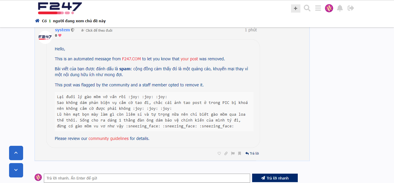 cứ tao lên tiếng bên đó là bị xoá…sáng giờ 4 lần rồi…buồn vãi