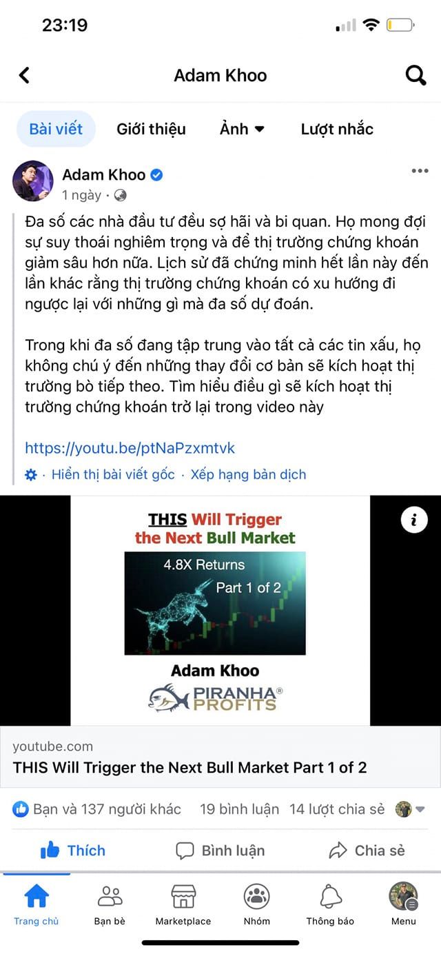 Có thể, nhưng a tin vào 1 vn hóa hổ châu á trong 5 năm tới, nên ck là kênh tuyệt vời để kiếm tiền hoặc đốt tiền