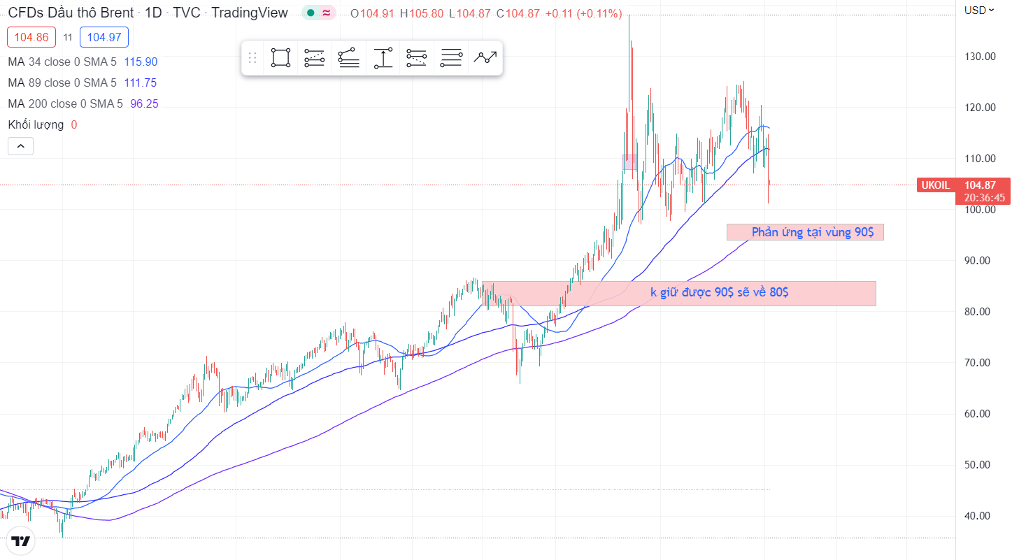 Dầu còn DOWN , em dự mức giảm sẽ là 80$ / thùng