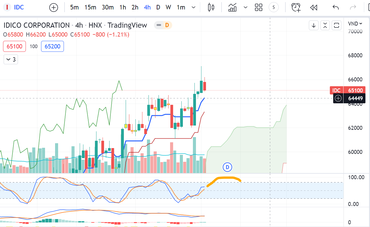 Sáng stochastic rớt khỏi vùng quá mua, tới chiều về tới quá bán → mai lại tìm đường lên