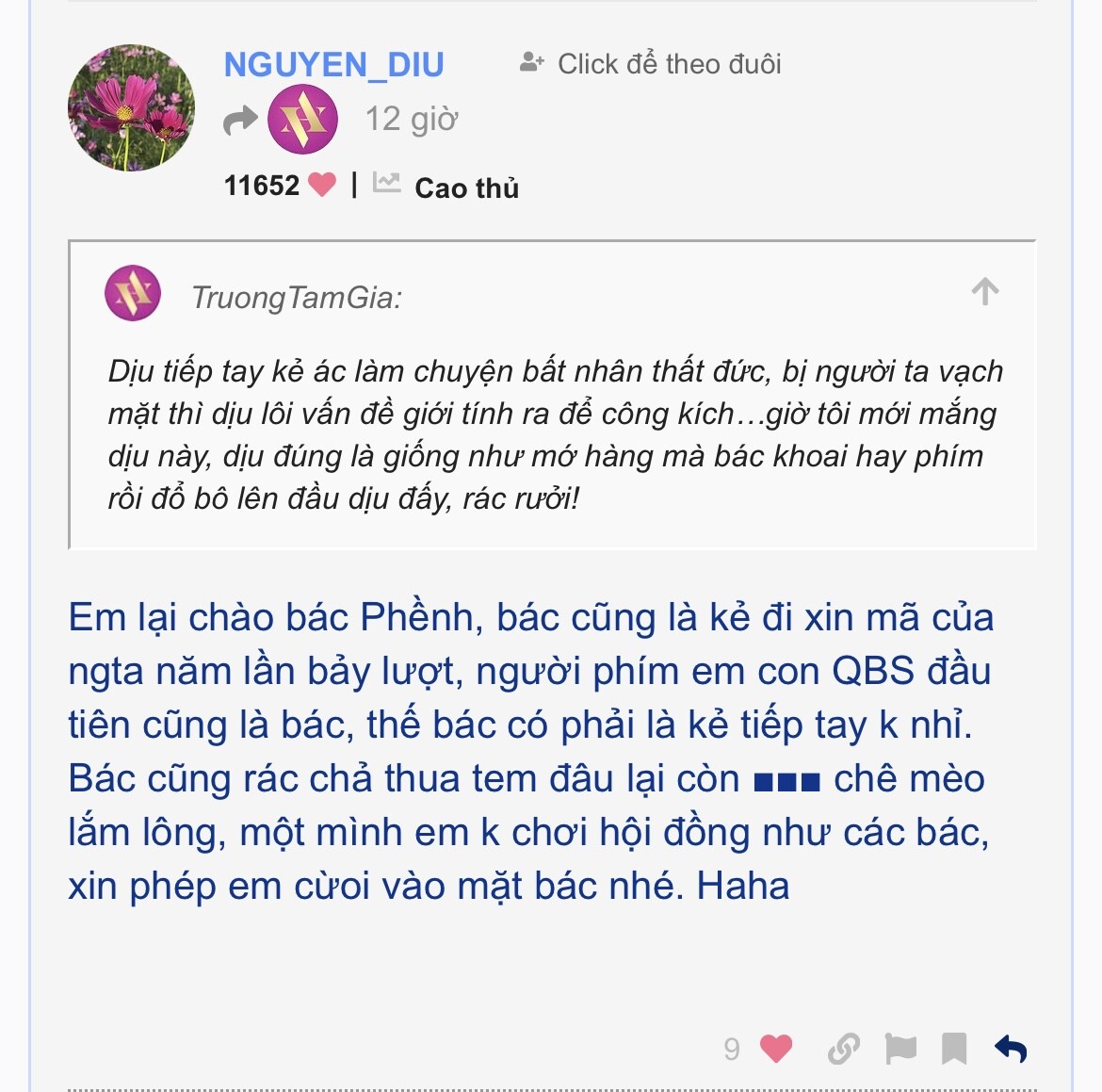 Mày muốn thể hiện điều gì ở đây? Là phải bị lùa xong im lặng để những người mới khác tiếp tục bị lùa đó hả. Vậy mày thuộc thứ vừa ngu vừa thiếu hiểu biết rồi.