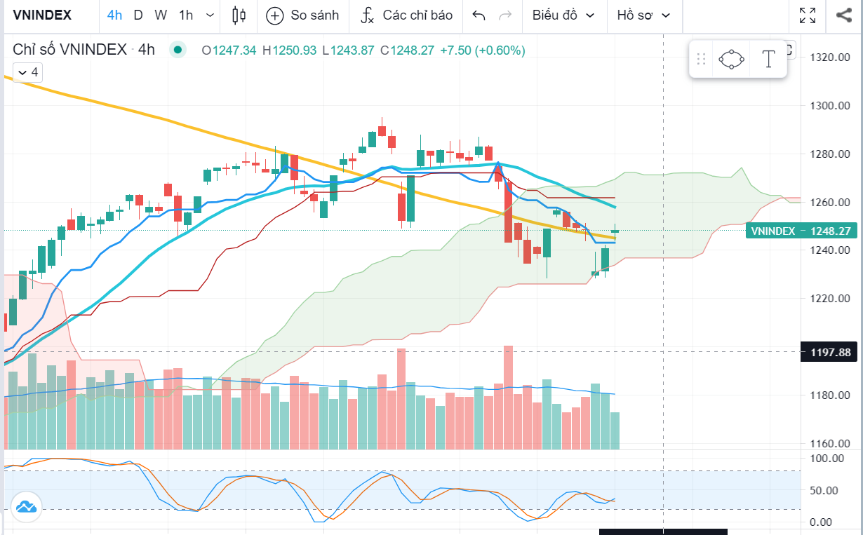 Nói chung anh chị em cứ xác định tâm lý trước có 30% sẽ không vượt được và quay lại test MA50 1 lần nữa, nếu thủng thì về 1200. Nên hạn chế trading vùng 124x-126x này.