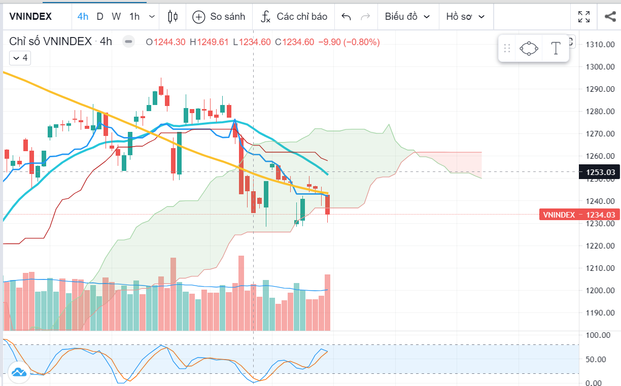 nay chart 1h đã rớt qua baseline → tín hiệu xấu