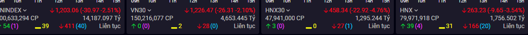 VNIndex nãy tạo gap down chart 1h luôn ghê thặc