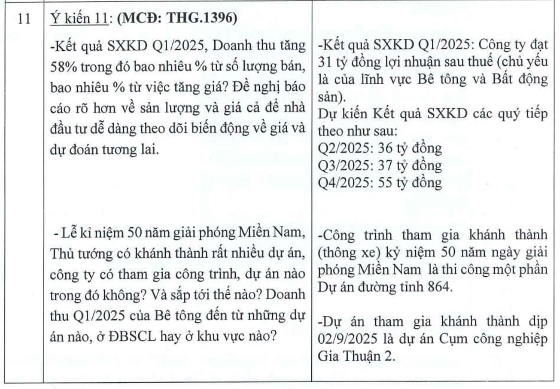 Thiếu hụt vật liệu: Nguồn cung cát và đá hạn chế gây ảnh hưởng tới sản lượng bê tông. THG đang chủ động đàm phán hợp đồng dài hạn để đảm bảo nguồn cung cho khách hàng.