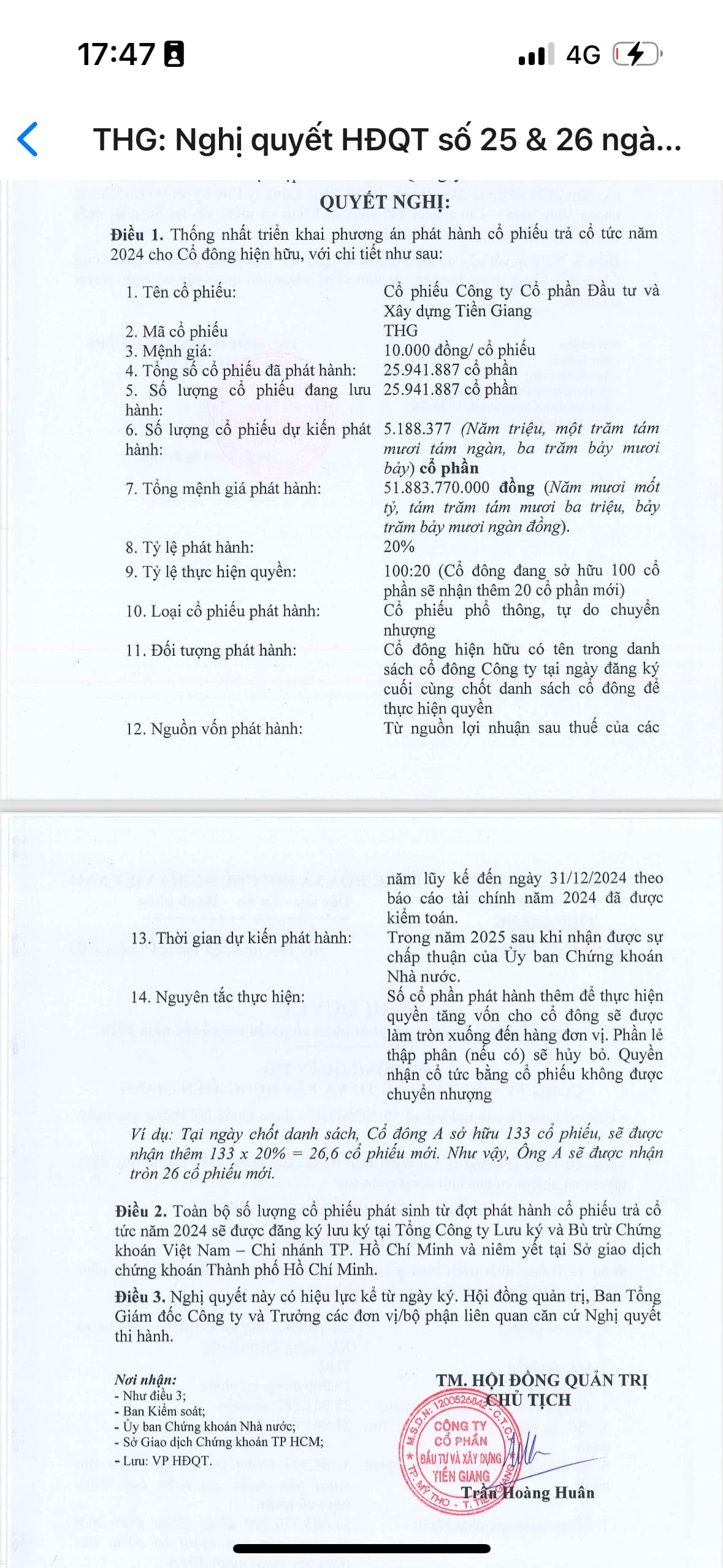 Sau khi ứng 2 lần tiền 10% và 10% cuối năm 2024 đầu năm 2025. Cổ tức còn lại của 2024 là 10% tiền mặt và 16% cổ phiếu, dự kiến sẽ được chia sau ĐHCĐ thông qua.