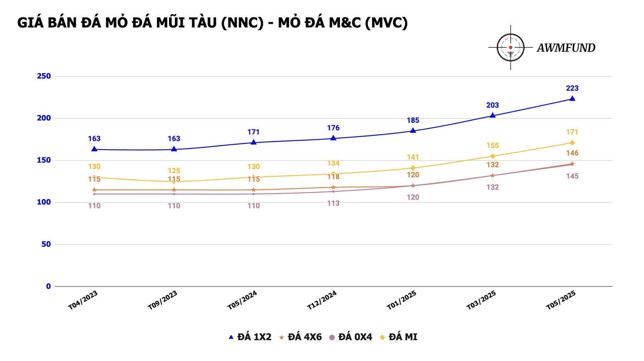 Trong cơ cấu đầu tư tài chính của MVC hiện có sở hữu 9.5 triệu cổ phiếu NNC, tương ứng 43.55% vốn điều lệ. Đây chính là một “con gà đẻ trứng vàng” cho MVC trong các quý tới, mặc dù rất muốn nâng thêm tỷ lệ sở hữu tại đây nhưng gặp nhiều vướng mắc, ban lãnh đạo đang nghiên cứu mua mỏ đá mới thì sẽ hợp lý hơn. Giá cổ phiếu NNC đã trở về đỉnh cũ nhưng công ty vẫn trích lập dự phòng khoản đầu tư này lên đến 80 tỷ đồng. Chúng tôi tin rằng, Kiểm toán BCTC bán niên 2025 sẽ loại trừ báo cáo tự lập này của MVC và chắc chắn sẽ yêu cầu hoàn nhập khoản dự phòng này đi thẳng vào LNST của công ty. Vì vậy, rất có thể khi cầm trên tay BCTC kiểm toán, lợi nhuận sẽ còn đột biến hơn nữa.