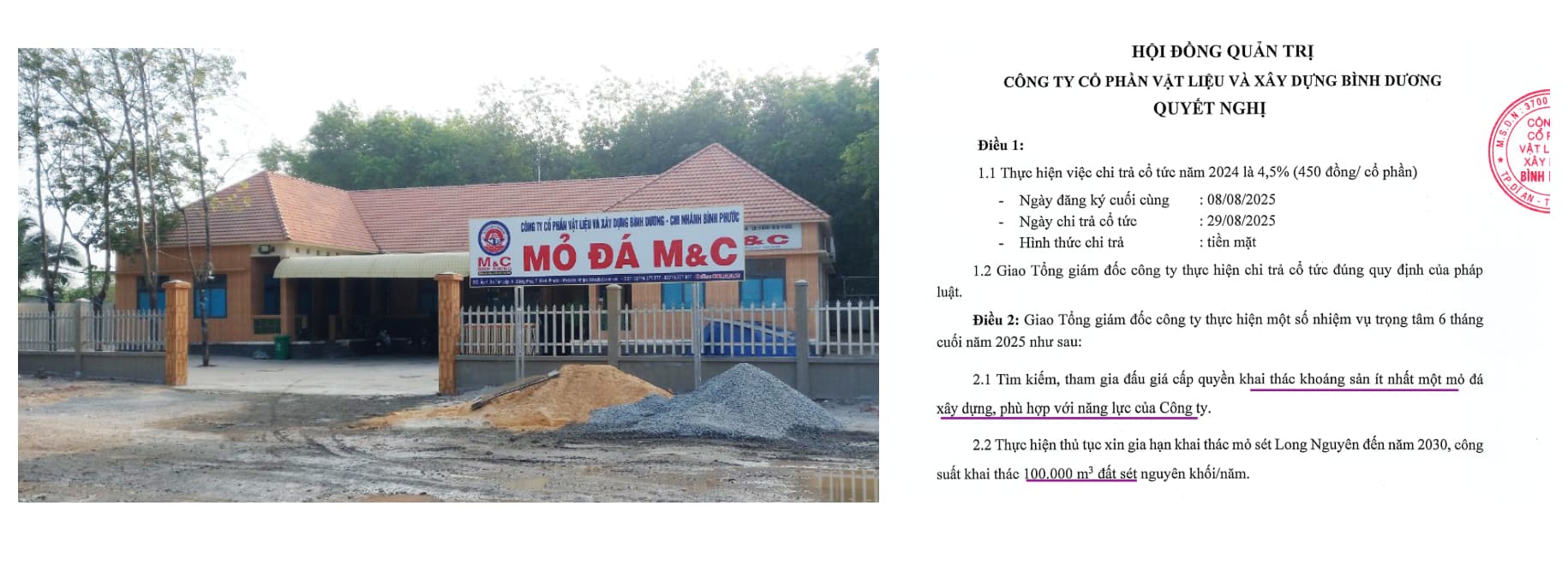 Công ty sở hữu 1 mỏ đá M&C công suất 1.4 triệu m3/năm.
