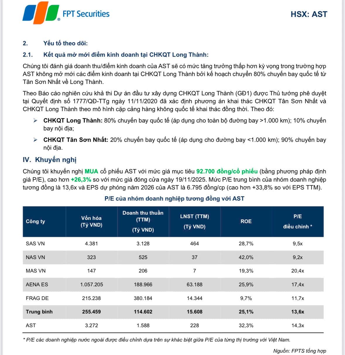Chúng tôi dự phóng doanh thu thuần và lợi nhuận sau thuế của AST trong 2026F lần lượt đạt 2.256 tỷ đồng (+32,2% YoY) và 416 tỷ đồng (+29,5% YoY).