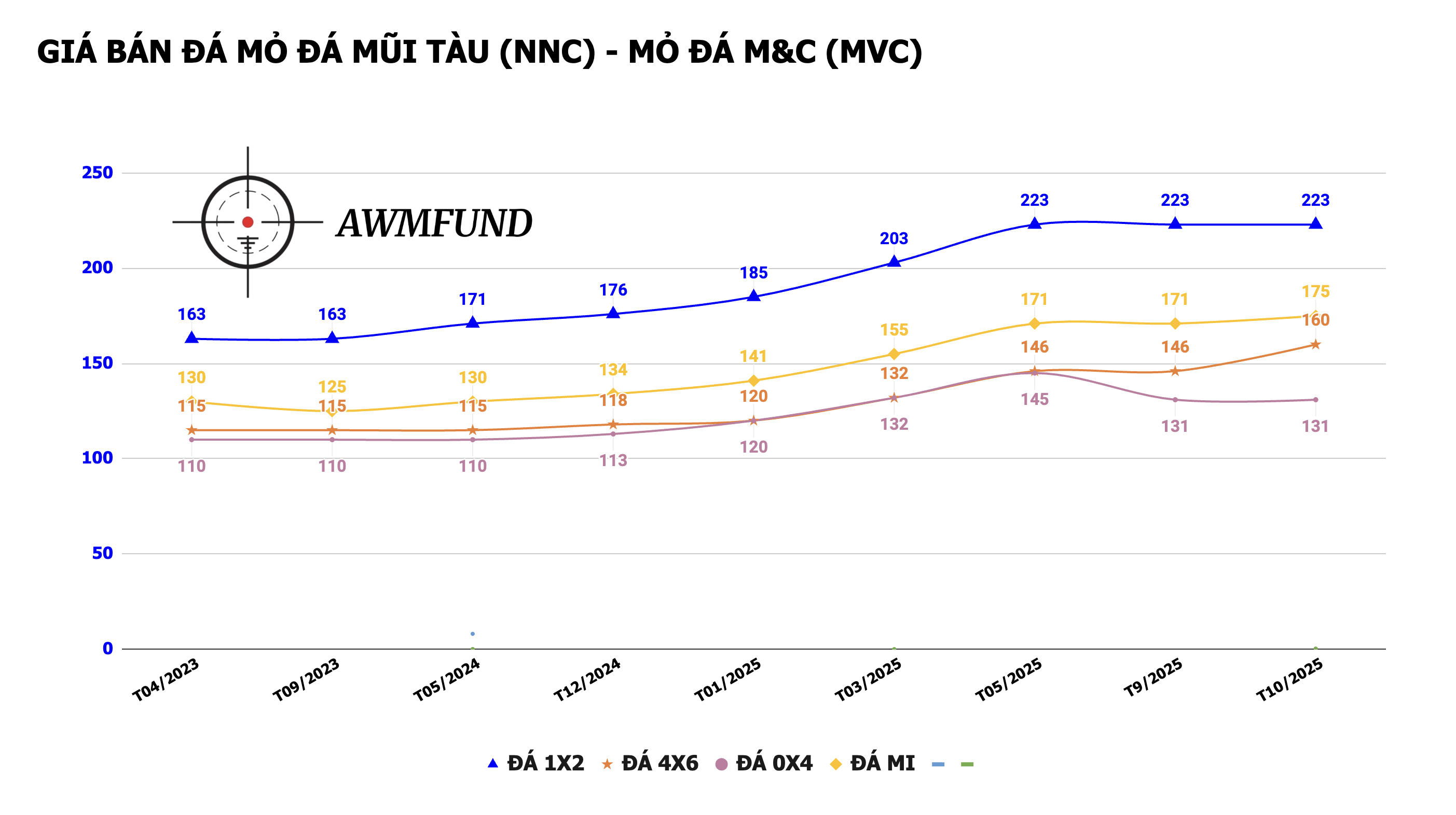 Một số các loại đá sản lượng bán chủ lực đã tăng giá tiếp diễn trong báo giá đầu tháng 10. So với thời điểm cuối năm 2024, giá đã đã tăng nhẹ khoảng 30% bình quân. KQKD cũng đã và đang được phản ánh vào các cổ phiếu Ngành Đá.