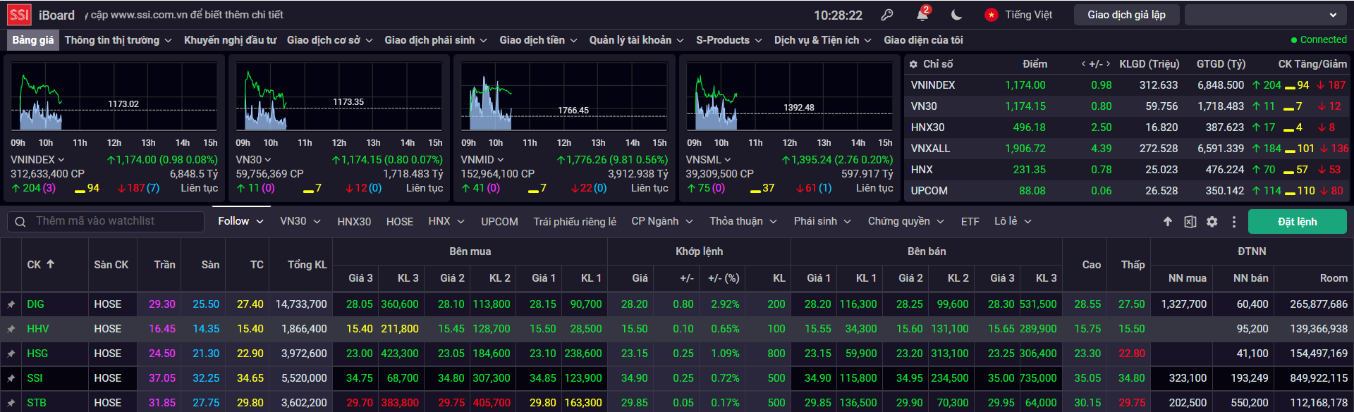 SSI cũng đang lời 3%, lực bán mạnh vào phiên T-2 đã thu hẹp sự tích cực song nến xanh vẫn được hình thành cho thấy bên mua vẫn đang khá tự tin vào xu hướng tăng hiện tại.