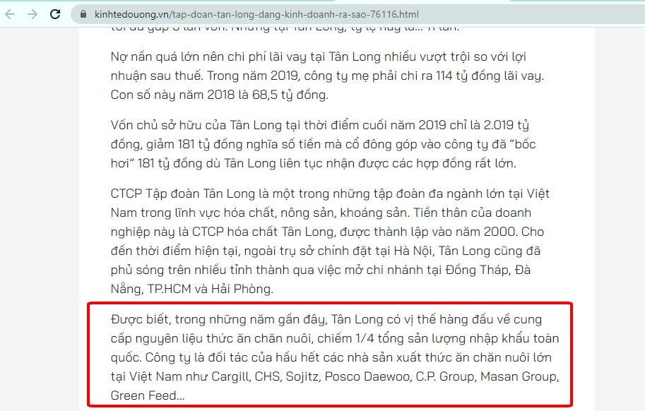 Kênh phân phối của Tân Long: Hiện tại Tân Long đang cung cấp một nửa nguyên liệu đầu vào cho nhanh sản xuất thức ăn chăn nuôi của Masan. Danh sách KH của Tân Long còn còn có Cargill, C.P, Green Feed,…