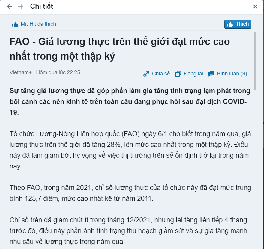 Khủng hoảng lương thực diễn ra thì doanh nghiệp nào giải quyết được bài toán về chi phí sản xuất đầu vào sẽ có được lợi thế cạnh tranh