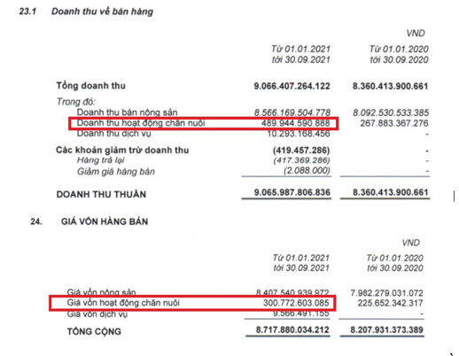 So sánh doanh thu mảng chăn nuôi: So sánh với DBC: Trong 9T2021, biên lợi nhuận mảng chăn nuôi của BAF ở mức 38.65% trong khi DBC chỉ đạt 11,78% cho thấy sự cạnh trạnh mạnh mẽ của doanh nghiệp trẻ BAF. Ngoài ra, việc tập trung nguồn lực vào mảng chăn nuôi heo sẽ giúp BAF tạo lên sự tăng trưởng mạnh hơn DBC khi DBC phân bổ nguồn lực vào thuỷ sản, gà, bất động sản