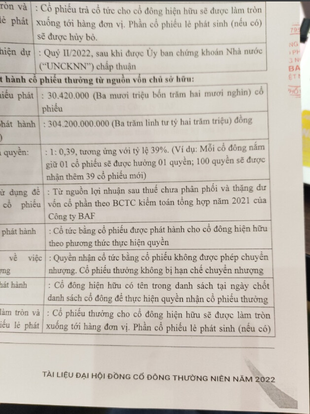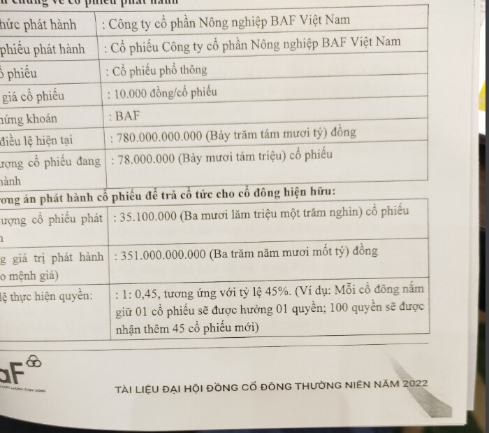 - Thưởng cp 39%, chia cổ tức 45%, tổng là chia 84% cổ phiếu