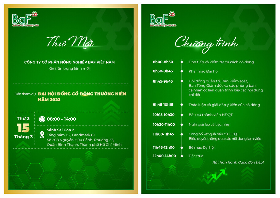 Cập nhật thông tin buổi họp ĐHĐCD BAF: