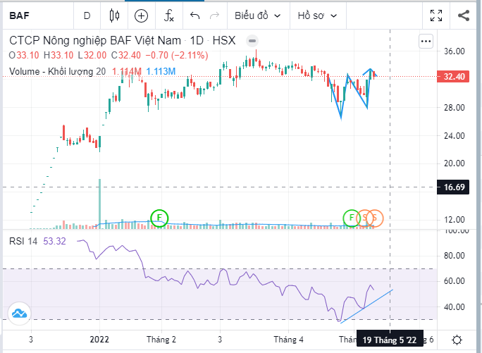 Hiện BAF đang hình thành mô hình 2 đáy, thể hiện tiếp xu hướng tăng giá của mình.