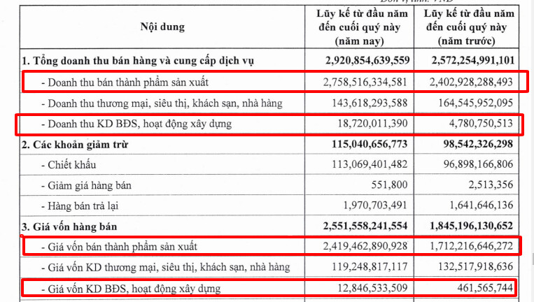 báo cáo tài chính quý 1 của DBC