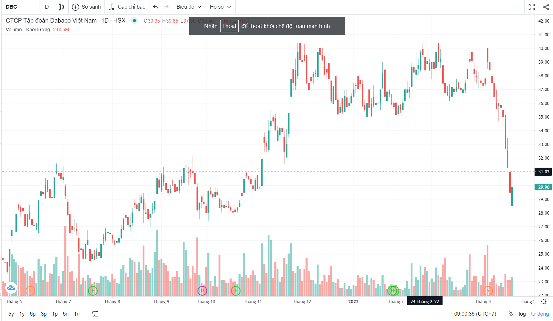CÒn với DBC, m vẫn đánh giá DBC: hết vị, phiên qua 21/4 DBC hồi 1,36%. Nhưng hồi để thoát, thanh khoản không thoả mãn về việc cổ phiếu tạo đáy. Và với lượng kẹt hàng gần 5 tháng trên vùng giá 35-40 thì khi giá hồi, lượng hàng này sẵn sàng đè bẹp tất cả nỗ lực tăng giá.