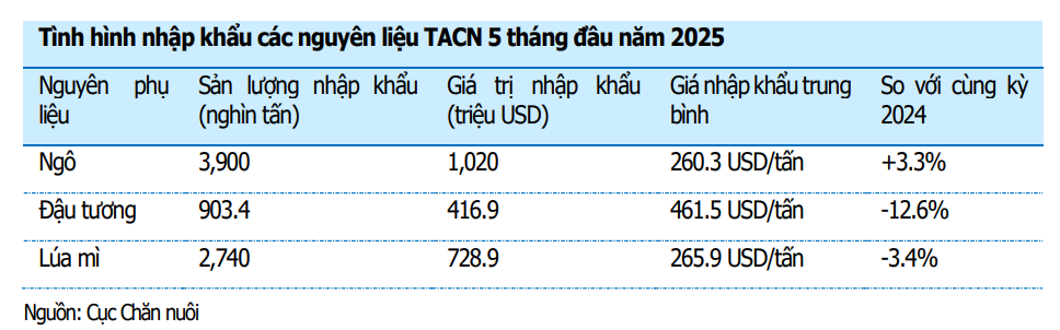 Giá nhập khẩu các nguyên vật liệu chính để sản xuất thức ăn chăn nuôi như đậu tương, lúa mì, ngô đều đang ở vùng thấp trong vòng 3 năm trở lại đây - là một yếu tố hỗ trợ giúp giá thức ăn chăn nuôi duy trì ổn định, từ đó hỗ trợ cho biên lợi nhuận của các doanh nghiệp và hộ chăn nuôi.