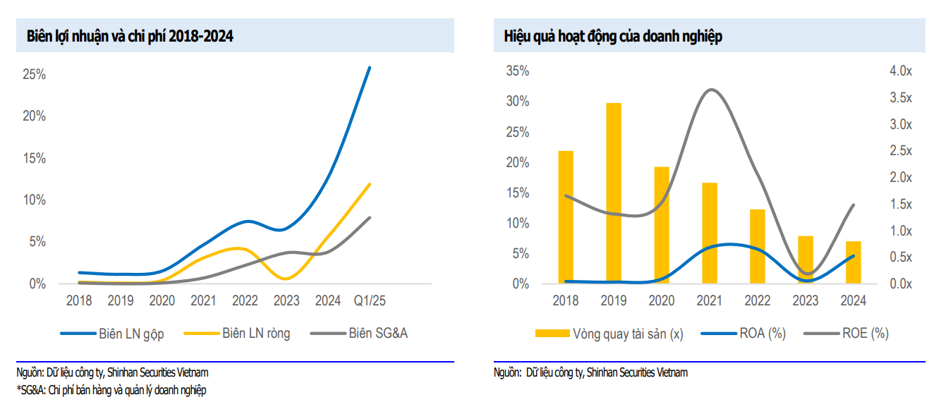 Đáng chú ý là BAF định hướng ngưng hoàn toàn hoạt động kinh doanh nông sản từ năm 2025 để tập trung toàn bộ nguồn lực phát triển mảng chăn nuôi. Số liệu Q1/2025 cho thấy công ty không còn ghi nhận doanh thu từ kinh doanh nông sản. Toàn bộ doanh thu Q1/2025 đều đến từ mảng chăn nuôi, đồng thời biên lợi nhuận gộp cũng cải thiện lên 25.8% (so với cùng kỳ là 10.3%).