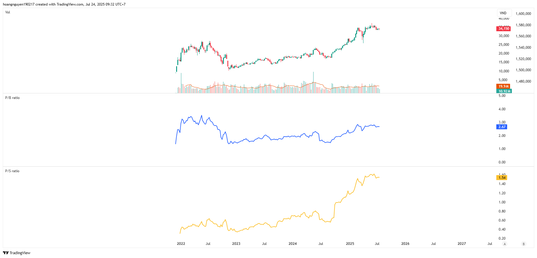P/S = 1.5 lần doanh thu không đạt như kỳ vọng.