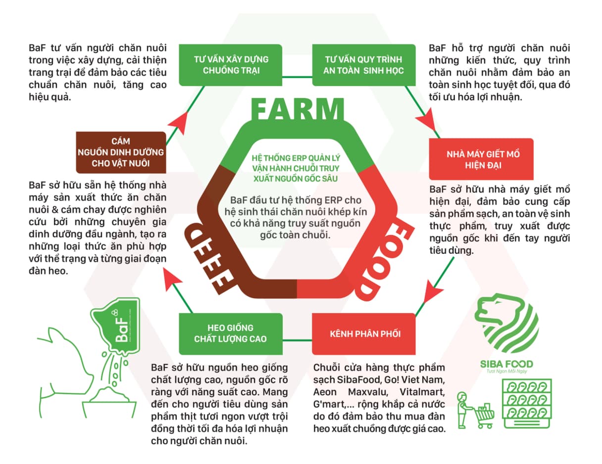 BAF vận hành theo mô hình “Feed – Farm – Food” (Từ thức ăn – Trang trại – Thực phẩm), kiểm soát toàn bộ chuỗi giá trị từ đầu vào đến đầu ra. Điều này mang lại những lợi thế cạnh tranh vượt trội: