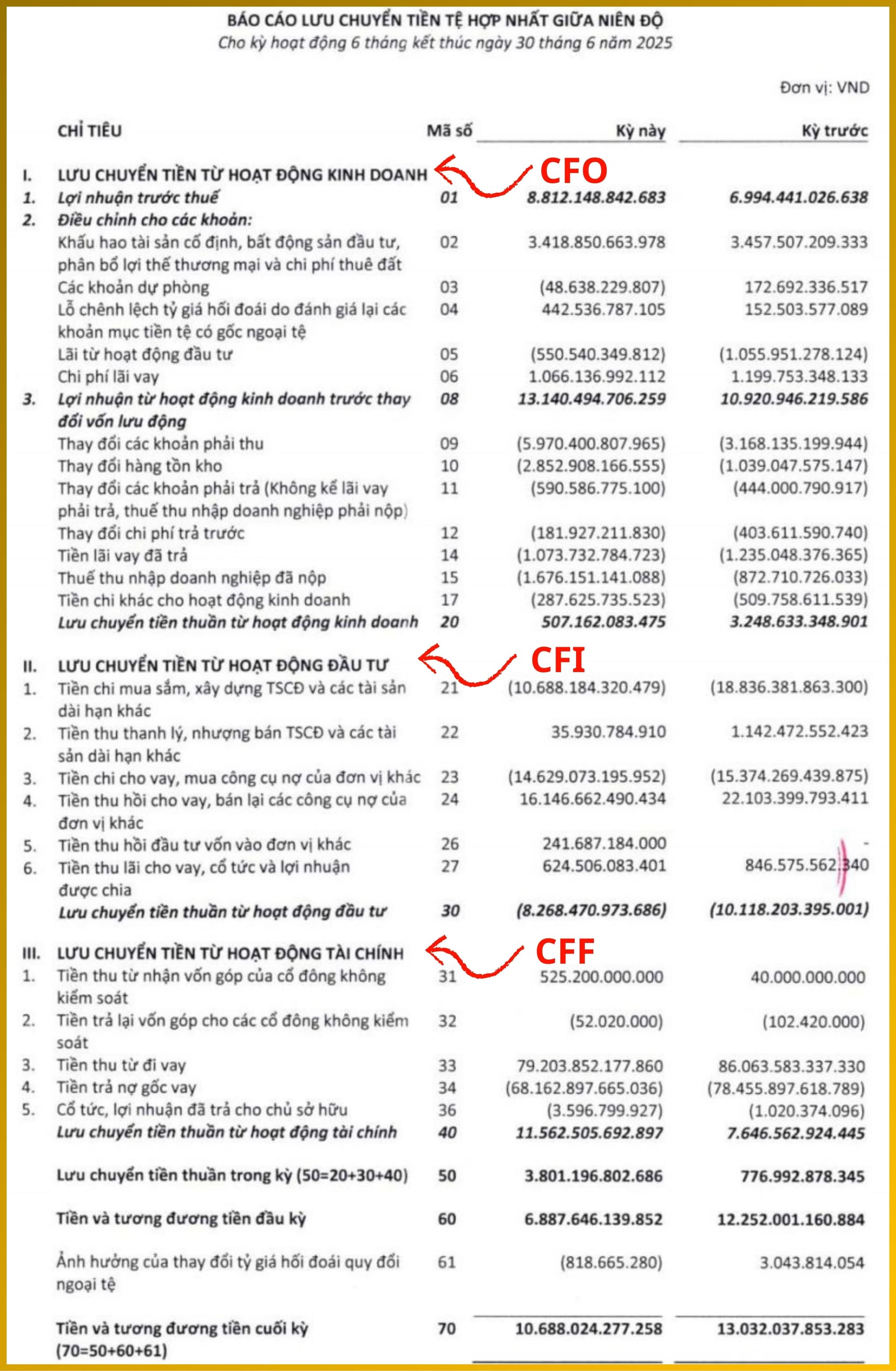 Do đó, CFS giúp nhà đầu tư tránh “bẫy lãi giấy - cháy tiền thật” và đánh giá sức khỏe tài chính thực sự của doanh nghiệp.