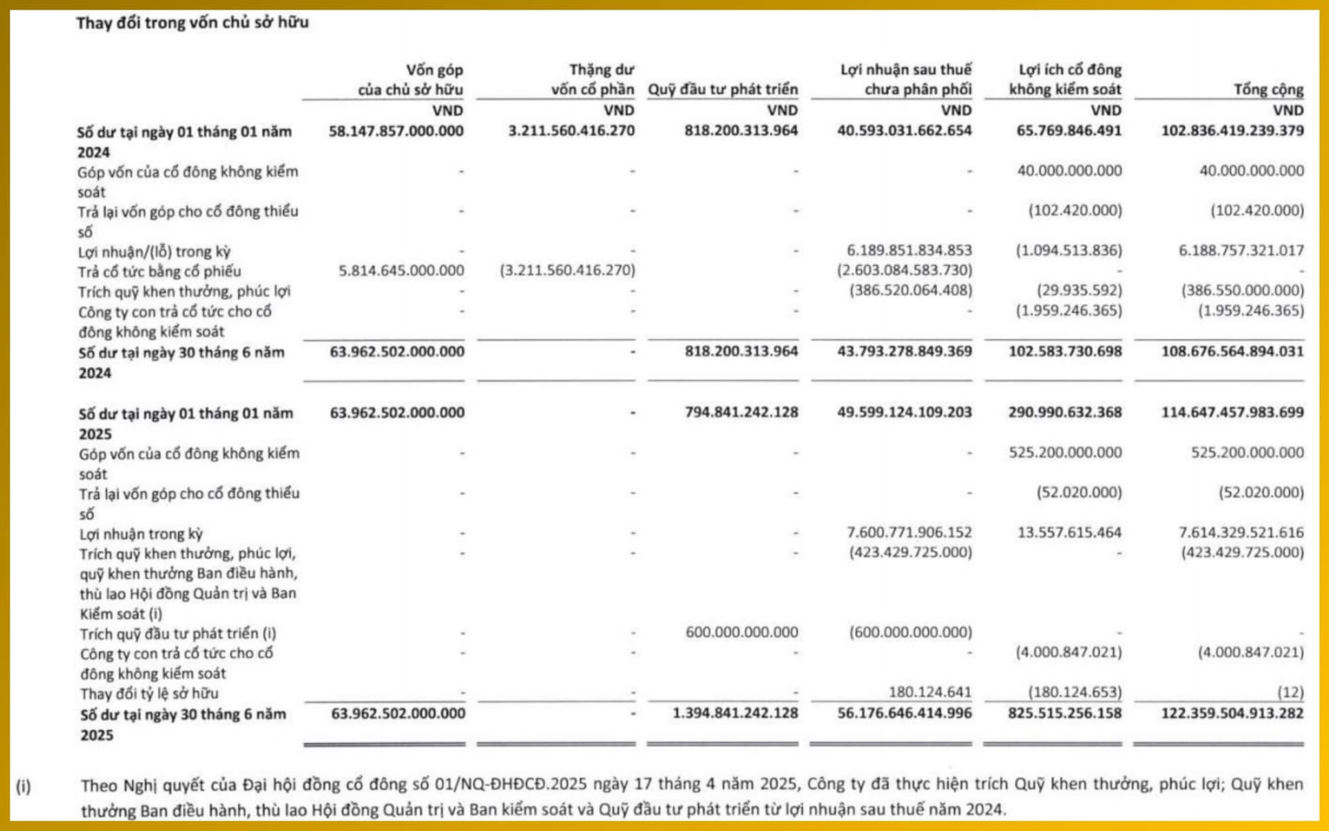 Nguồn gốc và cách doanh nghiệp sử dụng vốn chủ sở hữu: lợi nhuận được giữ lại bao nhiêu, trả cổ tức bao nhiêu, phát hành thêm cổ phần hay pha loãng vốn ra sao.