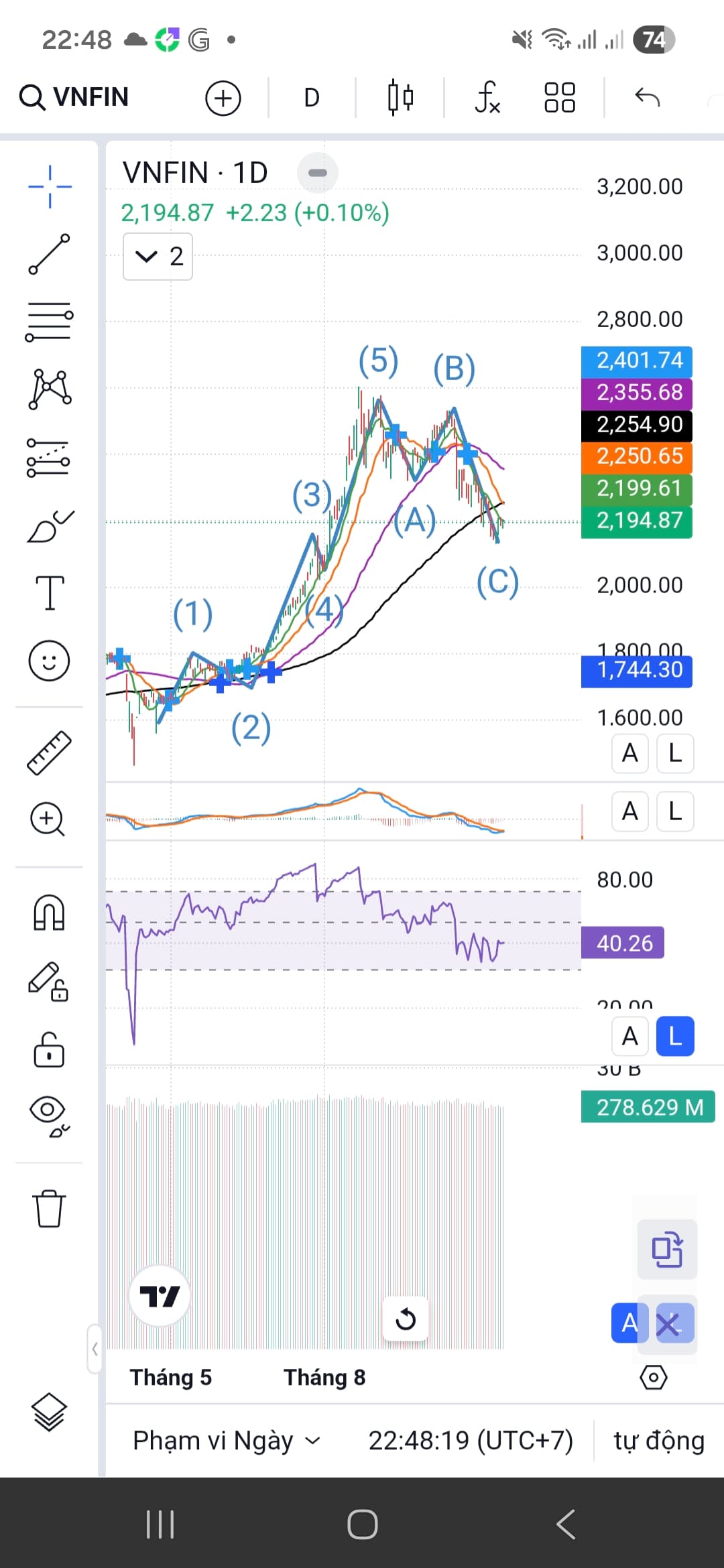 Lấy dòng tài chính làm ví dụ, cơ bản nó đã đi đủ nhịp pha chỉnh. Để đây khi nào vượt 2355 thì quay lại