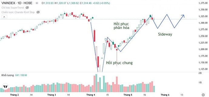 Trong bản tin ngày 16/04/2025 có tiêu đề: “3 chiến lược lựa chọn cổ phiếu trong Kỷ nguyên hỗn loạn”, em đã từng đề cập khá chi tiết đến chiến lược lướt sóng ngắn hạn trong bối cảnh thị trường khi đó đang trên đà phục hồi mạnh. Ở thời điểm đó, thị trường đang trong pha phục hồi sau đợt giảm sâu, với hai giai đoạn điển hình: Pha 1 – Hồi phục chung (VN-Index tăng từ 1.070 điểm lên 1.240 điểm, với diễn biến đồng thuận, nhiều nhóm ngành cùng tăng). Pha 2 – Hồi phục phân hóa (VN-Index tiếp tục tăng từ 1.220 điểm lên vùng 1.300 điểm, nhưng dòng tiền bắt đầu chọn lọc, phân hóa rõ rệt).