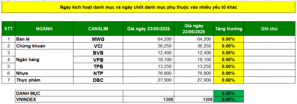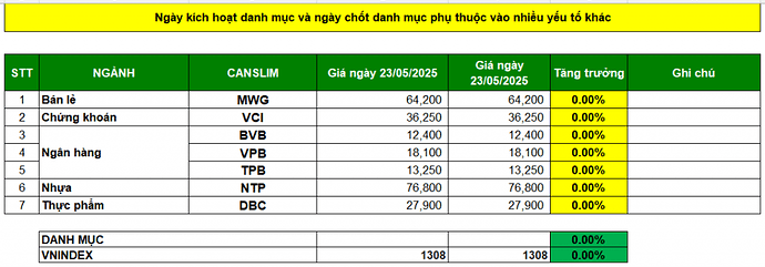 Như đã nhận định ở trên, dù thị trường vẫn còn nhiều bất định, đặc biệt là từ các yếu tố vĩ mô bên ngoài, nhưng em tin rằng Danh mục CANSLIM quý II/2025 vẫn sẽ là nguồn tham khảo hữu ích cho Anh/Chị Nhà đầu tư – đặc biệt là những NĐT muốn săn tìm cơ hội trong lúc thị trường còn đang “nhiễu”.