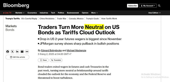 Trước những động thái ban đầu của cuộc chiến thương mại 2.0, không chỉ các nhà đầu tư quốc tế mà ngay cả các nhà đầu tư tại Mỹ cũng tỏ ra thận trọng. Trên thị trường tài chính, các nhà giao dịch đã giảm vị thế trong hợp đồng tương lai và trái phiếu kho bạc Mỹ do lo ngại về chính sách thuế quan mới cùng triển vọng kinh tế không rõ ràng. Đây là đợt giảm mạnh nhất kể từ tháng 11 năm trước. Để giảm thiểu rủi ro, họ đã chuyển sang các kênh trú ẩn an toàn hơn như đồng yên Nhật và tín dụng châu Âu.