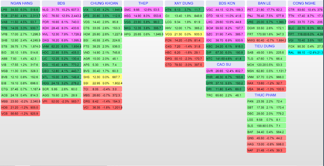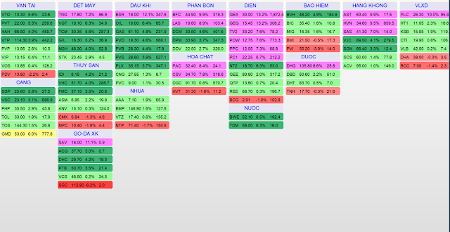 Tổng quan chung các nhóm ngành trong tuần qua: