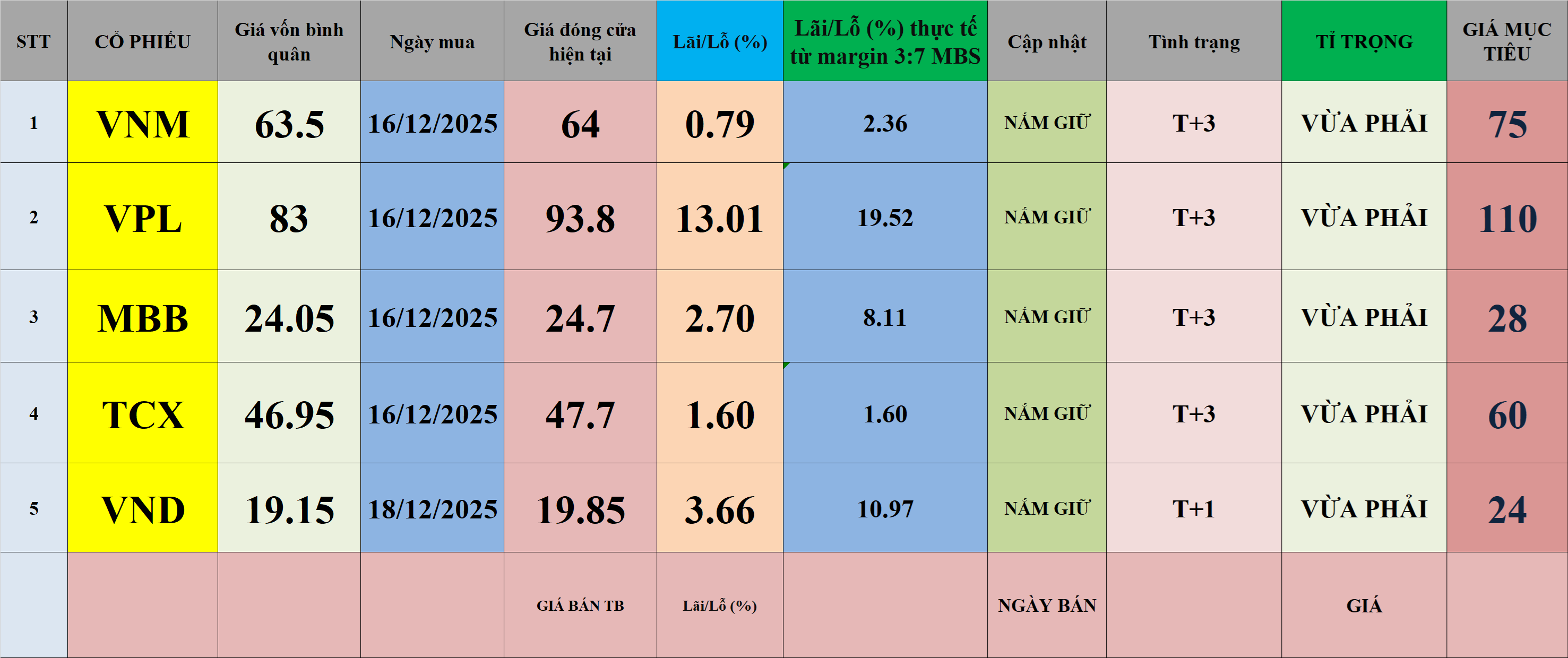 I : DANH MỤC ĐẦU TƯ NGÀY 22/12