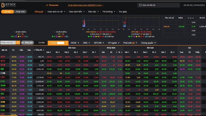Bảng điện của VNDirect còn chậm ghi nhận trong đầu phiên 1/4 (tại 9h26). Ảnh: X.N chụp màn hình một nhà đầu tư.