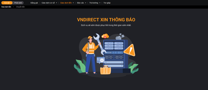 VNDirect chưa mở lại dịch vụ giao dịch tiền (tính đến 10h30 ngày 1/4). Ảnh: X.N chụp màn hình một nhà đầu tư.